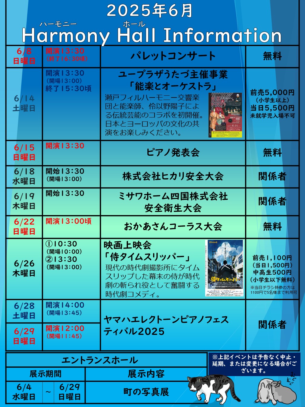 開館時間/午前9時30分~午後9時休館日/毎週月曜日(その日が祝日の場合は翌日) 年末年始、毎月整理日(最終金曜日。8月・9月・12月はありません)、特別整理日ユープラザうたづ 代表電話/0877-49-8020、ライブラリーうたづ/0877-49-8025